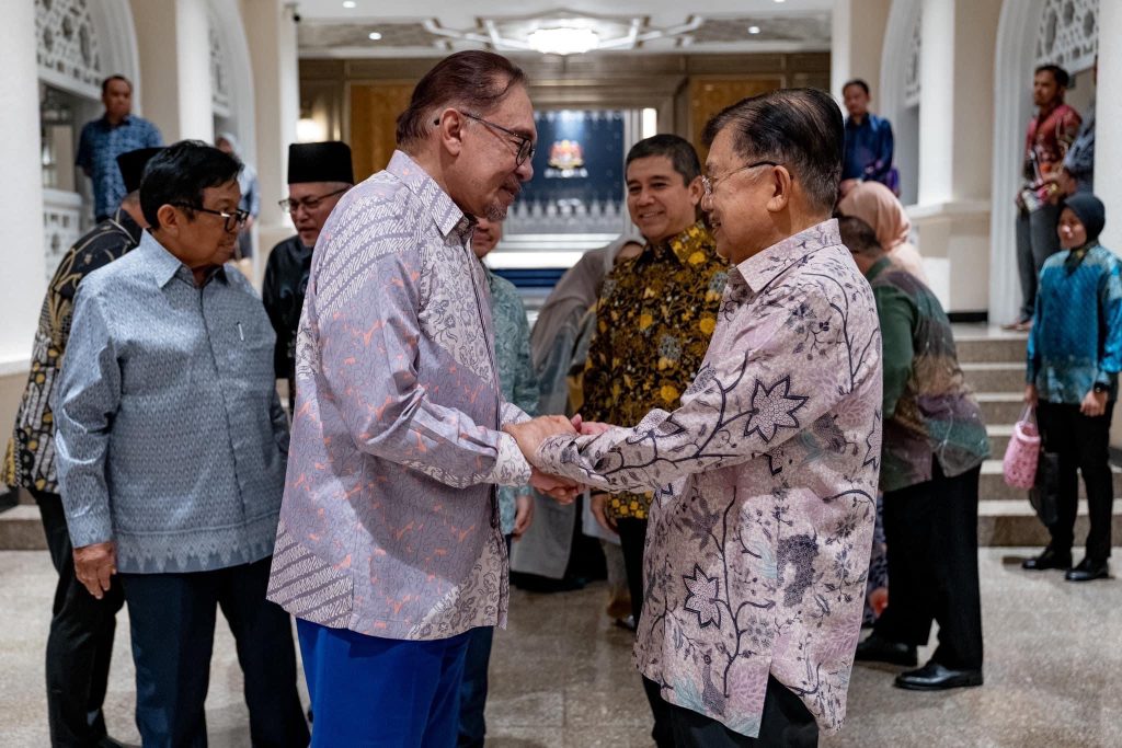 Perdana Menteri Datuk Seri Anwar Ibrahim dan isteri Datuk Seri Dr Wan Azizah Wan Ismail menerima kunjungan hormat bekas Naib Presiden Indonesia Muhammad Jusuf Kalla dan isterinya, Mufidah di Seri Perdana, Putrajaya, malam ini.